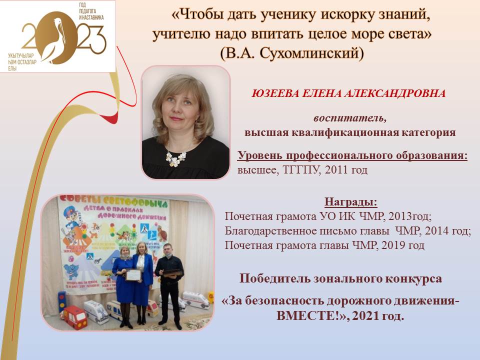 Юзеева Елена Александровна - воспитатель высшей квалификационной категории