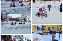 Воспитатели совместно с воспитанниками продолжают работу по благоутройству территории нашего детского сада. Зимние участки стали похожими на снежное царство. Большое значение педагоги придавали красочности, величине, целесообразности построек, чтобы они служили не только украшением участка, но и стимулировали движения, способствовали повышению двигательной активности детей, укреплению их здоровья и физического развития. Благодаря совместной работе детей и воспитателей участки стали любимым местом увлекательного, полезного и приятного времяпрепровождения.Теперь мальчишек и девчонок даже в морозные дни и пряником не заманишь с улицы в свои группы!