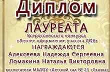 Наши педагоги лауреаты Всероссийского конкурса "Летнее оформление участка ДОУ" 05.09.2014
