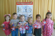Беренче кечкенәләр төркемендә, 23 февраль бәйрәменә багышлап, балаларның үз куллары белән ясалган аппликация-открыткалары. 20.02.2016