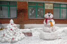 Сотрудники детского сада приняли участие в новогоднем оформлении территории детского сада.