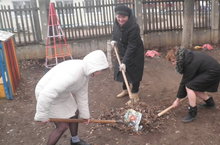 На очередной субботник по благоустройству территории дошкольного учреждения и прилегающей к нему территории вышли сотрудники детского сада №27 17.04.2015