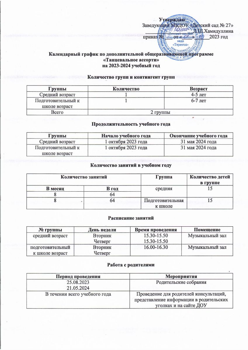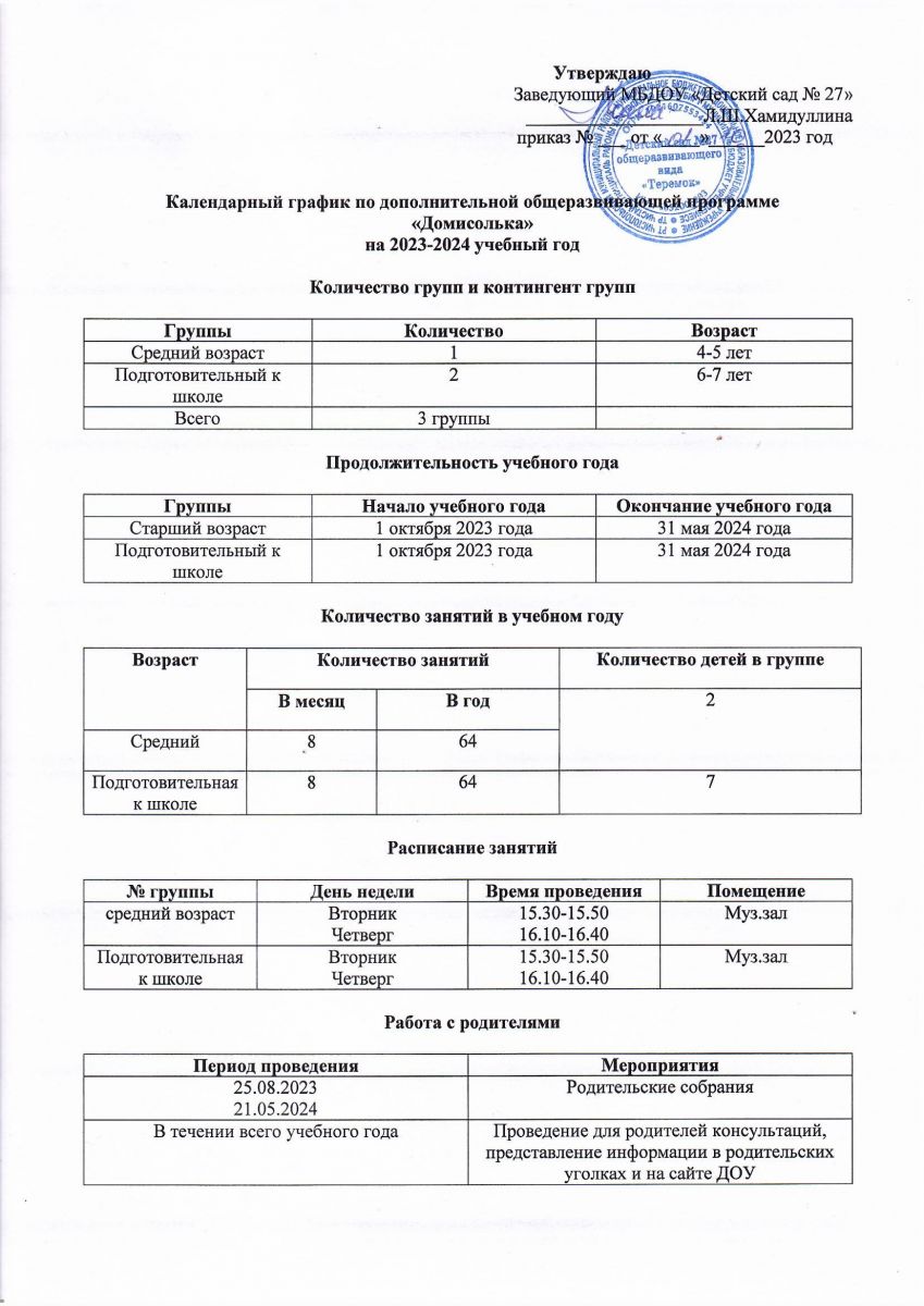 Календарный график по дополнительной общеразвивающей программы "Домисолька" на 2023-2024 учебный год
