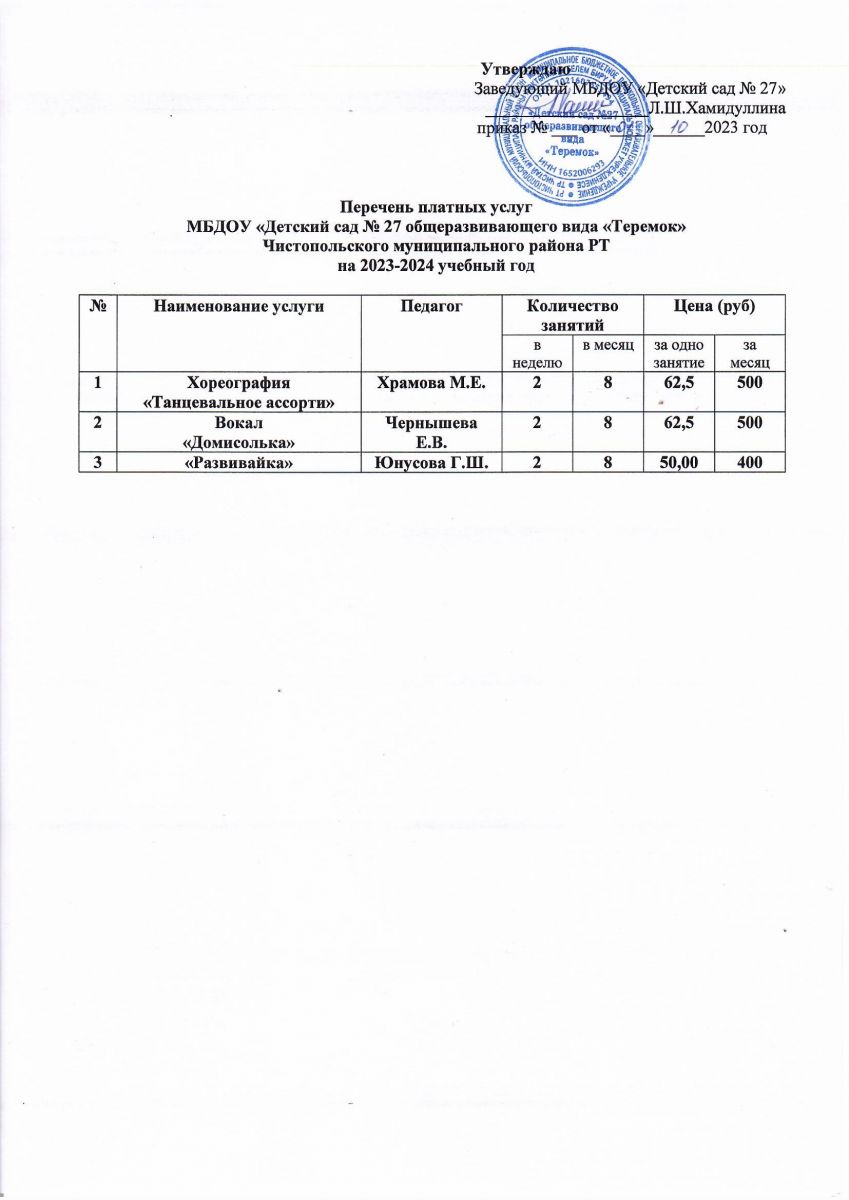 Перечень платных образовательных услуг на 2023-2024 учебный год