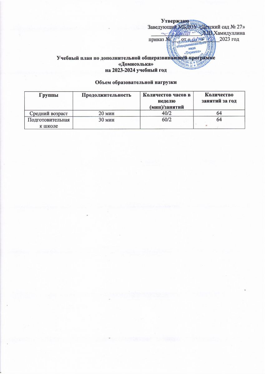 Учебный план по доплнительной общеразвивающей прграммы "Домисолька" на 2023-2024 учебный год