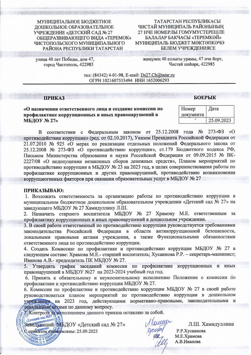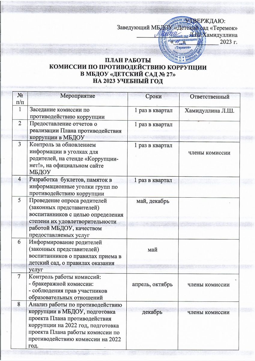 График заседаний комиссии по профилактике коррупционных правонарушений на 2023-2024 учебный год
