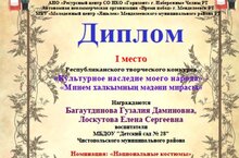 Воспитанники средней группы с воспитателями Васиной Н. П., Родниной Н. В. и педагоги Багаутдинова Г. Д., Лоскутова Е. С., Бочкарёва И.Н., Маликова Э.Р. стали победителями в республиканском конкурсе «Культурное наследие моего народа»