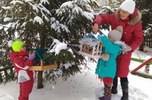 В нашем сердце есть и для птиц тепло. Воспитатели с детьми и родителями в зимний период поддерживают птиц, сделав для них кормушки, не забывают подсыпать в них корм.