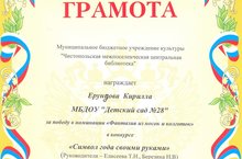 В рамках преемственности в работе детского сада и центральной детской библиотеки, в которой был организован конкурс поделок «Символ нового года» воспитанник группы «Светофорики» стал призёром этого конкурса. Поздравляем!