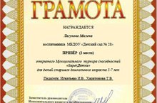 Лагунова М. – воспитанница подготовительной группы стала призёром в открытом Муниципальном турнире способностей «SuperДетки». Поздравляем!