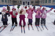 Инструктор по физической культуре О.В. Зяблицина регулярно обучает детей ходьбе на лыжах. Катание на лыжах способствует развитию пространственных ориентировок, координации движений, оказывает укрепляющее воздействие на формирование детской стопы.