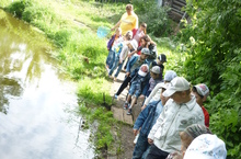 Дети подготовительной группы с родителями и воспитателем И.Е.Зотовой обошли близлежащие водоёмы и познакомились с их обитателями.