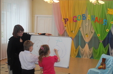 В ДОУ прошли развлечения по изобразительной деятельности с детьми средней, старшей и подготовительной к школе гуппы на тему: "Радуга - дуга", "Художественное кафе - "Палитра", "Путешествие в страну Рисовандию".