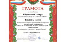 Поздравляем воспитанницу Ибрагимову Замиру с призовым II местом в Муниципальной научно -практической конференции "Знатоки родного края"!