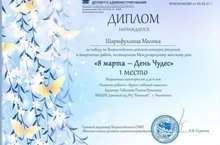 Поздравляем Валиуллину Аишу с заслуженной наградой в Международной викторине для детей дошкольного возраста.