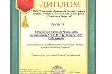 Котлыйбыз тәрбияләнүче-Гыймадиева Камилланы һәм тәрбияче-Гатауллина Э. Г. Балалар рәсемнәре "Эколятның - дуслары һәм табигатьне яклаучылары!" Бөтенроссия конкурсының муниципаль этабында җиңүче блып чыктылар. Конкурсның региональ этабы нәтиҗәләрен көтәбез!
