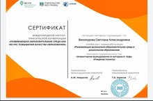 Музыкальный руководитель Винокурова С.А. представила стендовый доклад на тему: "Элементарное музицирование по методике К.Орфа "Раждение планеты" в Международной научно-практической конференции" Развивающая оброзовательная среда как ресурс повышения качества образования"