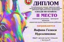Поздравляем педагога Вафина Г.Н. с II местом Республиканского конкурса творческих работ "Соседи по планете".