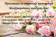 Приглашаем родителей на утренник посвященный Международному женскому дню! / Ата-аналарны Халыкара хатын-кызлар көненә багышланган бәйрәмгә чакырабыз!