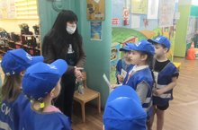 Сегодня в нашем детском саду прошла акция совместно с инспектором ГИБДД Хаматшиным А. и начальником отделения ГБУ Сидоровой С.Р. Маленькие ЮИДовцы обратились к родителям с просьбой соблюдать ПДД. Папам и мамам вручены буклеты и листовки.