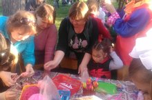 В Скарятинском саду наши педагоги провели мастер-классы для детей "Радужные поделки из бумаги и ниток"