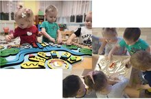 Дошкольный возраст - это время активного познания окружающего мира. Сенсорный, чувственный опыт является источником познания мира. Наши малыши имеют возможность играть и развиваться благодаря таким тренажёрам как бизиборды и песочные столы. Эти игровые пособия удовлетворяют любопытство ребенка, желание исследовать окружающий мир. Действуя с сенсорно-двигательными тренажерами, ребенок развивает следующие навыки: мелкую моторику, координацию движений, усидчивость, логику, цветовое восприятие, память, развивает речь. Использование бизибордов и песочных столов в работе - это развитие тактильных ощущений, моторики пальцев, логики и мышления, гармоничного развития детей раннего возраста.