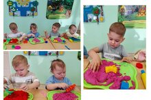 Игра с песком – одно из самых любимых занятий детей. Но игра с песком – это не простое времяпрепровождение. Это много новых эмоций и развивающих игр. Кинетический песок является идеальным материалом, который может воплотить любые образы и замыслы. Наши малыши с удовольствием тянуться к песку, а педагоги придают этой тяге творческую составляющую и из обычного ковыряния в песке получается образовательный процесс. У детей развивается мелкая моторика, творческое воображение, коммуникативные навыки, которые способствуют созданию гармоничных отношений между взрослым и ребенком.