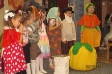 В рамках социального партнерства взаимоотношений между ДОУ города и района, на основании годового плана работы, в МБДОУ с успехом прошла осенняя театральная неделя. Старшие воспитанники выступали со сказками «Репка на новый лад», «Три сестры» - для малышей и родителей, а дети подготовительной группы пригласили к себе на показ музыкальной сказки «Морковкина свадьба» воспитанников из МБДОУ №10. Чувствовалось волнение артистов перед своими сверстниками. Участники сказок-спектаклей старались показать себя настоящими артистами. Представление понравилось как сверстникам, так и самим юным артистам. Дети совместно провели танцевальный флешмоб, а затем сфотографировались на память.