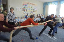Традиционно в дошкольном учреждении, согласно годовому плану работы, в конце февраля чествуем наших дорогих пап и дедушек! Вот и в этом учебном году, во всех возрастных группах прошли праздничные утренники, посвященные сильной половине человечества, нашим Мужчинам, защитникам! Педагоги и их дети, на празничных мероприятиях, предлагали папам и дедушкам участие в конкурсах: "Собери ребенка в детский сад", "Донеси не промочив ноги", "Свари ребенку суп", "Завяжи бантик дочке" и т.д. Но главной задачей для защитников Отечества, в этот день, было перетянуть канат у соперников. Вот где папы проявили мужество и отвагу! Спасибо вам, МУЖЧИНЫ, примите поздравления от ваших детей и педагогов ДОУ в день 23 февраля!