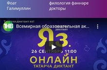 26 сентября 2020 года в 11.00 телерадиокомпанией "Новый век" был проведен диктант на татарском языке в онлайн формате в рамках проведения акции "Татарча диктант". От нашего коллектива в акции приняли участие 9 человек: 7 педагогов татарской национальности и 2 медицинских работника. Цель акции научить писать на татарском языке без ошибок, повысить грамотность, расширить круг читателей татарской литературы.