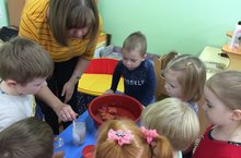 В детском саду состоялся коллективный просмотр образовательной деятельности с детьми подготовительной группы №4 для педагогов нашего дошкольного учреждения. Провела его воспитатель Заднева С.В. Присутствующие наблюдали проведение опытно-экспериментальной деятельности по теме "Знакомство со свойствами дерева".