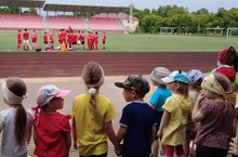 Сегодня для ребят младшей группы "Улыбка" организована первая экскурсия. Дети посетили тренировку юных футболистов на стадионе ТАТНЕФТЬ "Олимп"