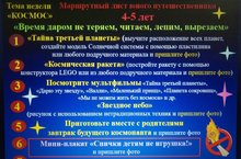 Маршрутный лист юного путешественника «Время даром не теряем, читаем, лепим, вырезаем» по теме "Космос"