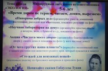 Педагогическим коллективом детского сада разработан план образовательной деятельности - маршрутный лист юного путешественника «Время даром не теряем, читаем, лепим, вырезаем» по теме "Экология" (по возрастам). С планом ознакомлены родители воспитанников.