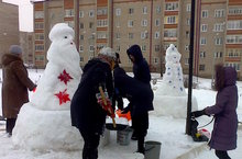 Педагоги детского сада "АБВГДейка" приняли участие в подготовке к новогоднему представлению в микрорайоне №1 "Дом медиков". Руками воспитателей на территории Гимназии №3 были вылеплены главные герои Нового года - Дед Мороз и Снегурочка... Вниманию жителей нашего микрорайона. Новогоднее представление, посвященное Новому году, в нашем микрорайоне состоится 23 декабря 2015 года в 17.00 часов на территории Гимназии №3. 17.12.2015