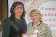 17 декабря 2014 года наш воспитатель Спирина Ирина Михайловна приняла участие в республиканском конкурсе профессионального мастерства русскоязычных воспитателей "Я говорю и работаю по-татарски - 2014". Ирина Михайловна стала победителем номинации конкурса "Кладезь фантазии и мудрости". На снимке Спирина И.М. с председателем жюри конкурса, начальником отдела дополнительного профессионального образования и мониторинга качества профессионального образования Министерства образования и науки Республики Татартан Шаяхметовой Розой Искандеровной 18.12.2014