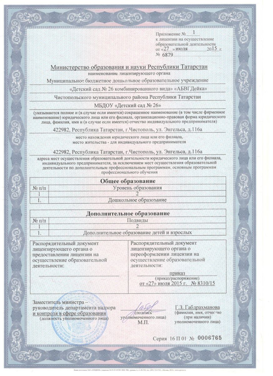 Приложение к лицензии на осуществление образовательной деятельности и дополнительного образования