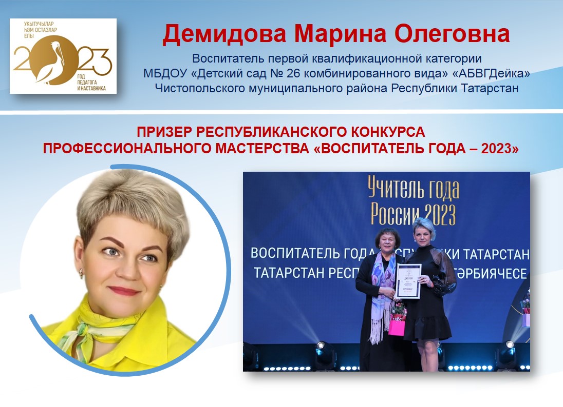 Призер республиканского конкурса профессионального мастерства "Воспитатель года - 2023"