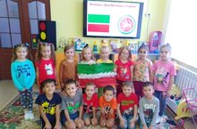 В средней группе "Ромашка" ко дню рождения Республики, изготовили коллективнную работу из "Флаг из ладошек".