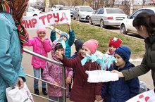 Ребята группы "Незабудка" провели акцию "Мир, труд, май", подарив голубей, сделанных руками детей, жителям микрорайона Мебельная фабрика.