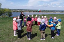 Ребята группы "Ромашка" отправились на прогулку на берег Камы, где педагогами были были организованы подвижные игры.