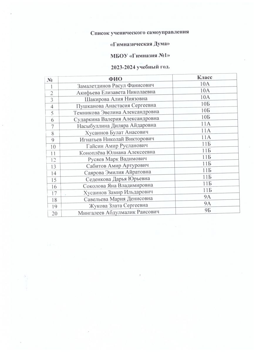 В гимназии создана обстановка, при которой каждый учащийся ощущает сопричастность к решению главных задач, стоящих перед педагогами и учащимися. Важную роль при этом призвано сыграть участие детей в управлении своим коллективом. С этой целью в гимназии создана Гимназическая Дума. Руководит работой демократического государства гимназии Президент, который избирается из числа учащихся старших классов.