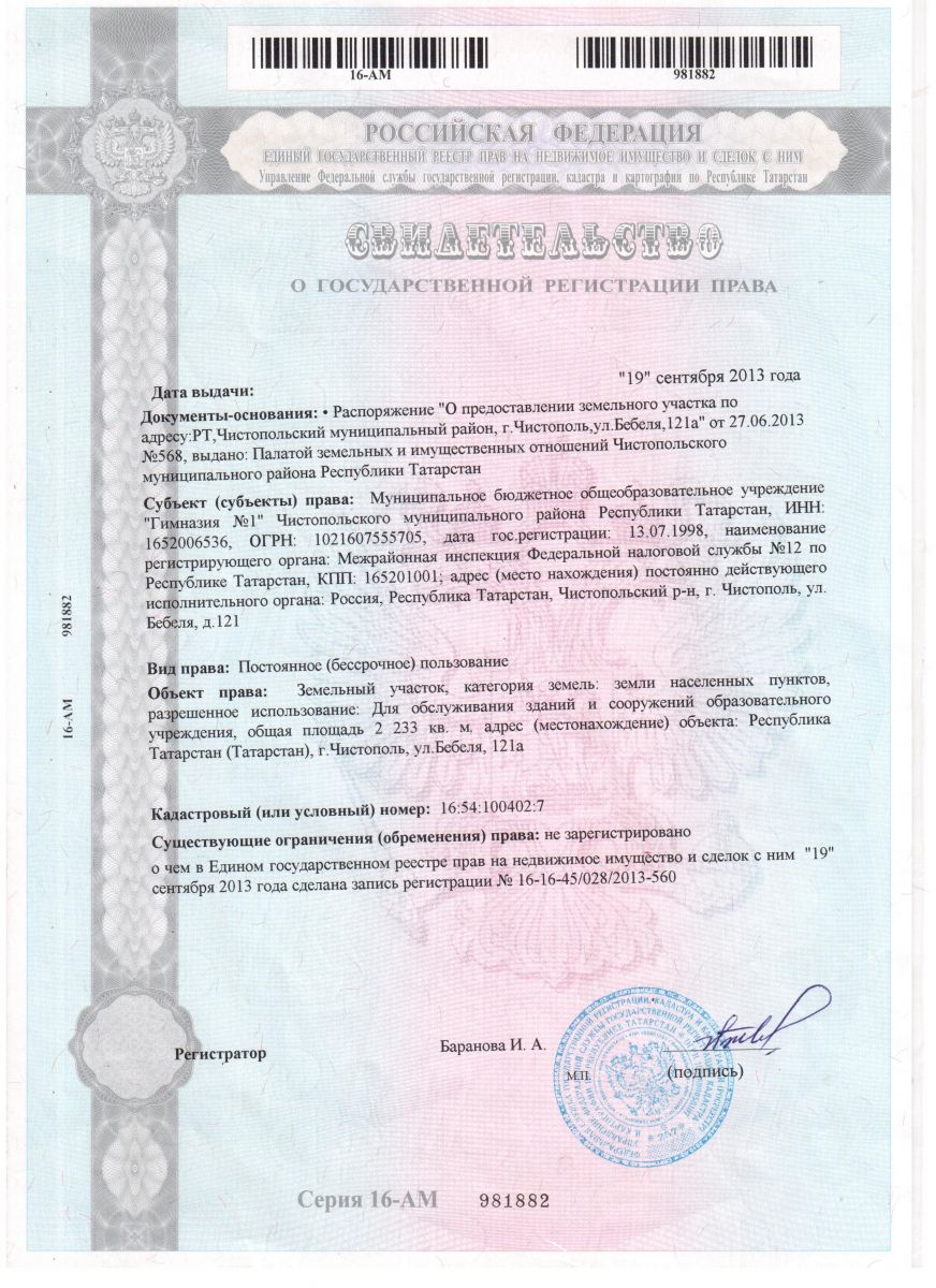 Муниципальное бюджетное общеобразовательное учреждение «Гимназия №1» Чистопольского муниципального района Республики Татарстан/Татарстан Республикасы Чистай муниципаль районы "1 нче Гимназия" муниципаль бюджет гомуми белем учреждениесе