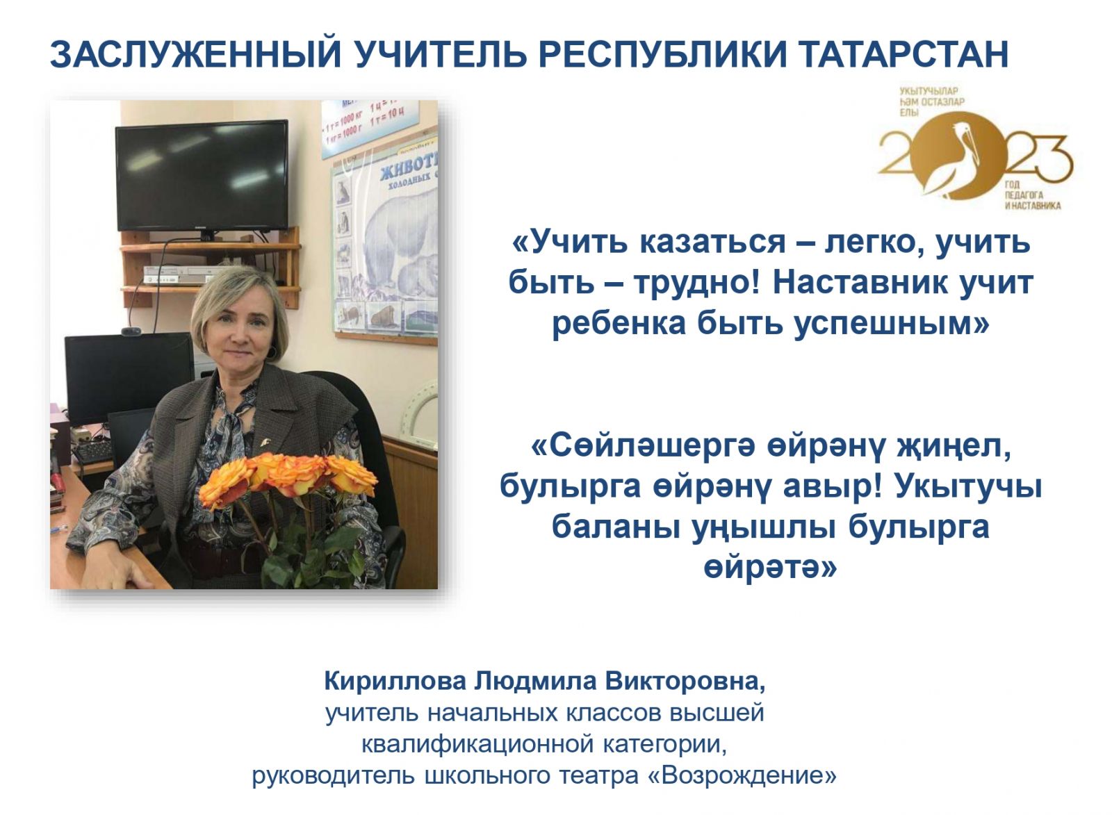 В Год педагога и наставника за многолетний, добросовестный труд в деле обучения и воспитания подрастающего поколения Почетной грамотой Министерства образования и науки Республики Татарстан награждена Педагог-библиотекарь МБОУ "Гимназия №1" Кубышкина Любовь Владимировна!