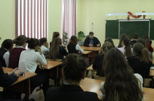 9 нчы февраль көнне, куркынычсызлык кагыйдәләре күтәрү максаты буеча ОГИБДД Воляков В. инструкторы белән, башлангыч һәм өлкән сыйныфлар очраштылар.