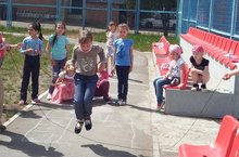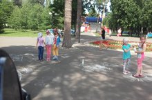 Этот день ребята провели на свежем воздухе: играли с мячом, прыгали на скакалке, рисовали мелом на асфальте.