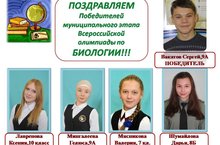 ПОЗДРАВЛЯЕМ победителей и призеров муниципального этапа Всероссийской олимпиады школьников по биологии: