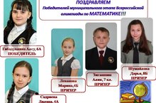 Поздравляем победителей и призеров муниципального тура Всероссийской предметной олимпиады школьников по математике: