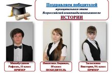 Поздравляем победителей и призеров муниципального этапа Всероссийской олимпиады школьников по истории: