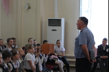 В целях повышения эффективности работы по предупреждению ДДТП и пропаганды безопасного поведения на дорогах среди учащихся начальных классов в гимназии прошла встреча с инспектором ОГИБДД, капитаном полиции М.М. Мадыховым. В ходе беседы ребята обобщили знания о соблюдении ПДД.